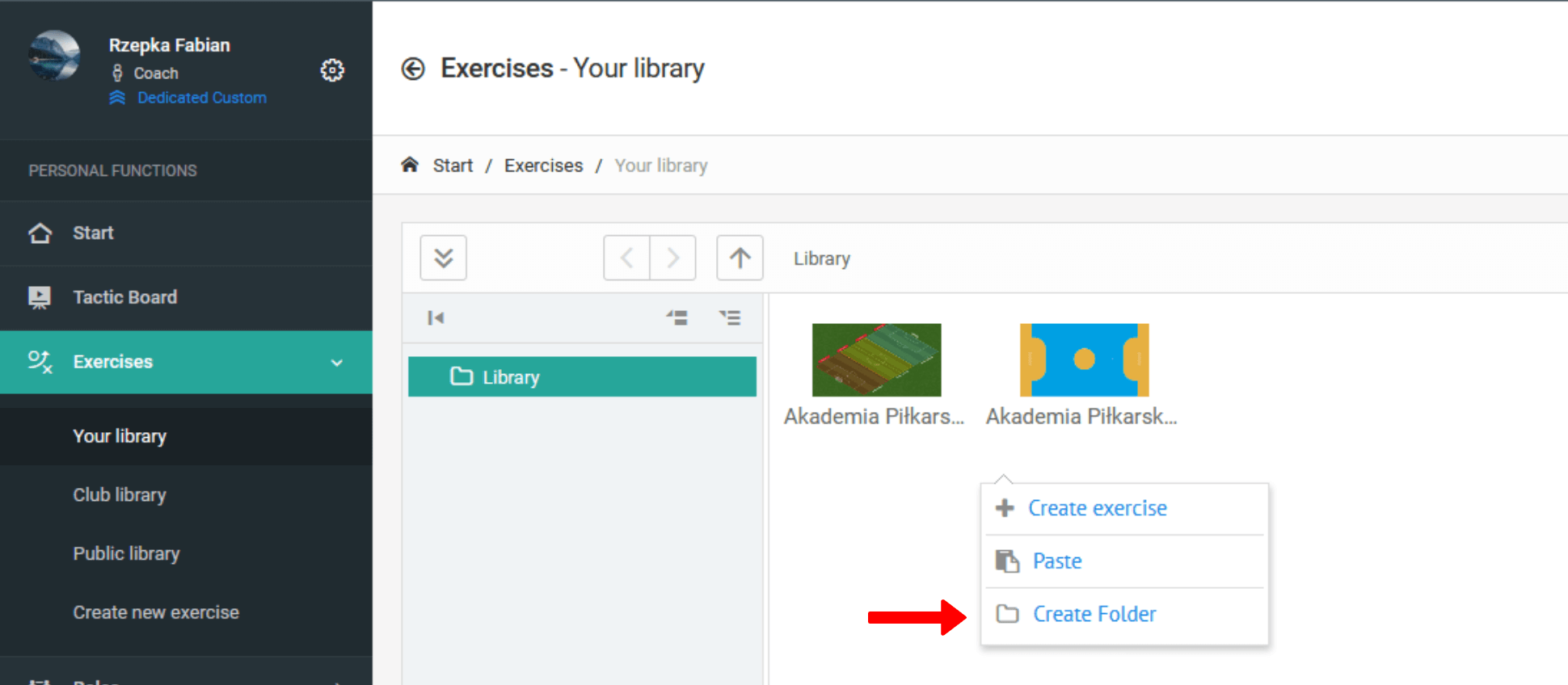 As bibliotecas permitem que você crie qualquer estrutura de diretório que possa ser livremente incorporada. Para criar uma nova pasta, clique com o botão direito em uma área em branco e depois selecione "Criar Pasta" no menu de contexto.